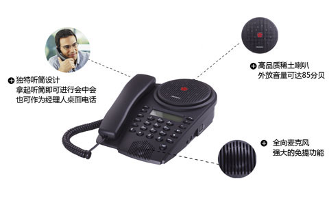 高性能的小型会议电话,可充分满足小型电话会议会场(建议5人)的需求。
